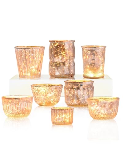 Златен живачен стъклен свещник - комплект от 8 За бюджетна версия този комплект на Amazon също работи. $50,07 на Amazon