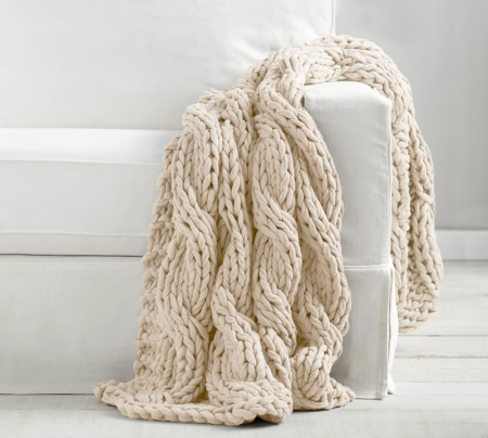 Колосално ръчно плетиво Това е най-хубавият акцент част за всеки диван или легло – това ръчно плетено одеяло от 100% акрил, което прави всичко извънредно уютно. $161,97 - $269 в Pottery Barn