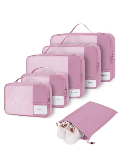 BAGAIL 4 Set/6 Set Compression Packing Cubes A smart, travel-friendly solution that keeps your suitcase tidy and stress-free. Тези кубчета за компресиране на опаковки са направени от трайна тъкан, с цел да устоят на бръчки, петна и изхабяване. $33.99 on Amazon