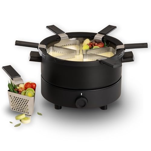 Комплект електрически фондю Evolution, 3-литров бульон от неръждаема стомана за храни и съд за фондю Този комплект фондю разрешава вие създавате ястия в жанр гореща тенджера, сирене или шоколадово фондю и готвите месо, морски блага, зеленчуци и юфка – което прави опциите в действителност безкрайни. $199,99 на Amazon