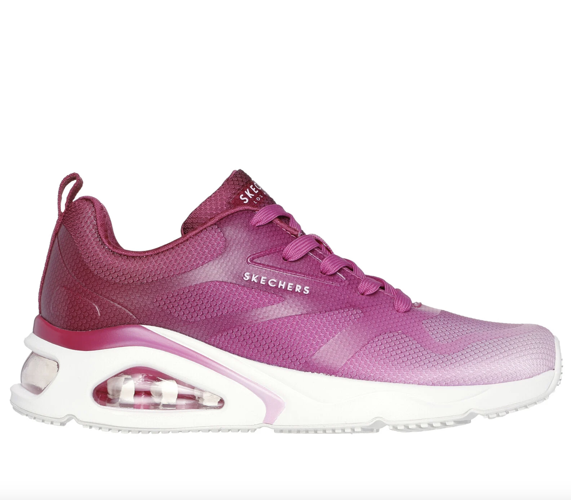 Tres-Air Uno – Brighten Up Какъв по-добър метод да покажете на „ единствения си сътрудник “ какъв брой ви е грижа от нов чифт обувки? Sketchers има тематична линия за Свети Валентин от маратонки и чехли, които се оферират в разнообразни нюанси на розово и алено. Като тези елегантни обувки с връзки, които се отличават с омбре мрежа за прелъстителен дизайн и стелка от мемори пяна за оптимален комфорт. $120 в Sketchers