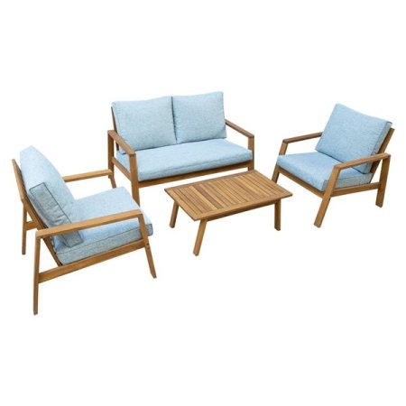 Dukap Saman 4 елементи FSC® комплект за вътрешен двор с дървена рамка Този комплект за вътрешен двор с дървена рамка въплъщава класическа, само че съвременна хармония. Изработен от FSC-сертифицирано акациево дърво и водоустойчиви възглавници, той е резистентен на атмосферни въздействия и елементарен за разчистване. $1059 в Rona