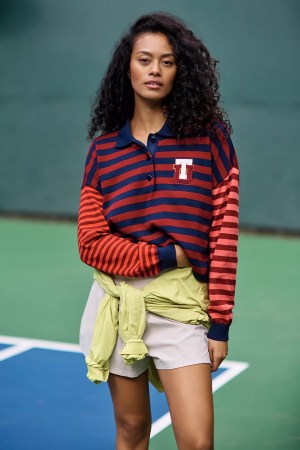 Не е загадка, че преппи стиловете имат пресен миг тази пролет, а тениската за ръгби е водеща в стилния пакет. Класически атлетичен детайл, който се трансформира в наложителен за готино дете (благодаря, Тейлър Суифт!), пробвайте своя в гигантско райе с дънки с висока талия и бързи ритници.