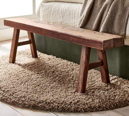 Rustic Reclaimed Wood Bench (60-inch) As one example, we love this Pottery Barn Driftwood Panel, ‘worn smooth by sun and sea, ” but we also can’t get enough of the rustic feel of the brand’s Reclaimed Wood Bench, made of entirely repurposed lumber. $899 at Pottery Barn