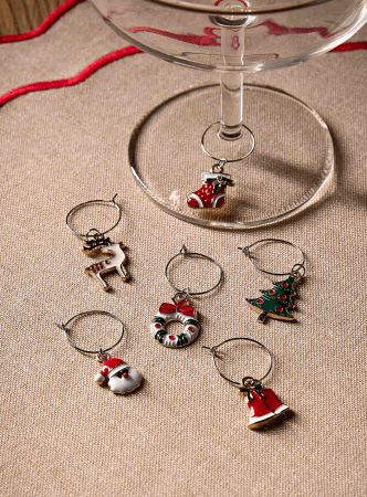 Празнични знаци Стъклени маркери Комплект от 6 Кажете наздраве с този комплект от шест шикозни стъклени маркера, идеални за игриво идентифициране на напитката на всеки посетител. Изработен от сплав цинк, мед и акрил. $14,00 в Simons