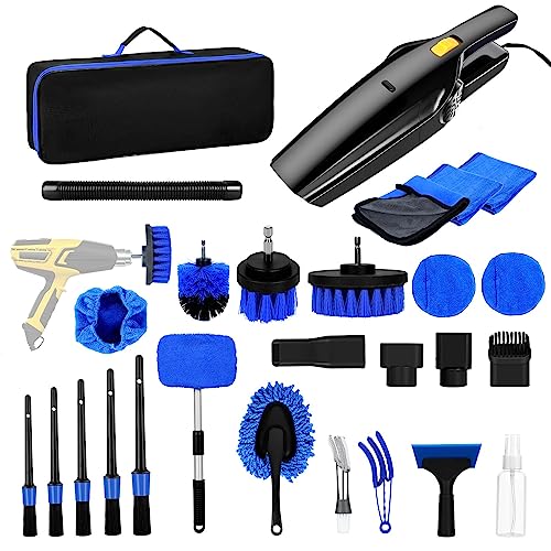 Кола Комплект за елементи на интериора За изцяло решение за разчистване на автомобил пробвайте комплекта за елементи от 22 елементи. От четки до ръчна прахосмукачка, той е съвършен за изчерпателен вътрешен искра. Удобно ги съхранявайте в включената чанта в багажника на колата или на задната седалка и придайте моден подтик на интериора на колата си. $55,99 на Amazon (беше $60,99)
